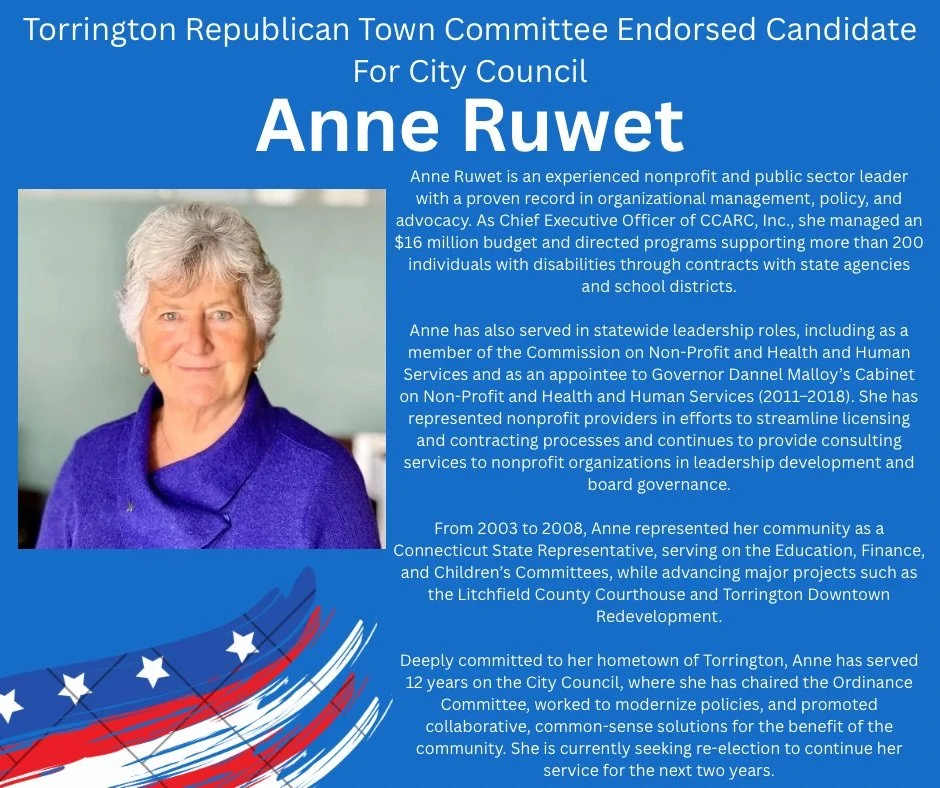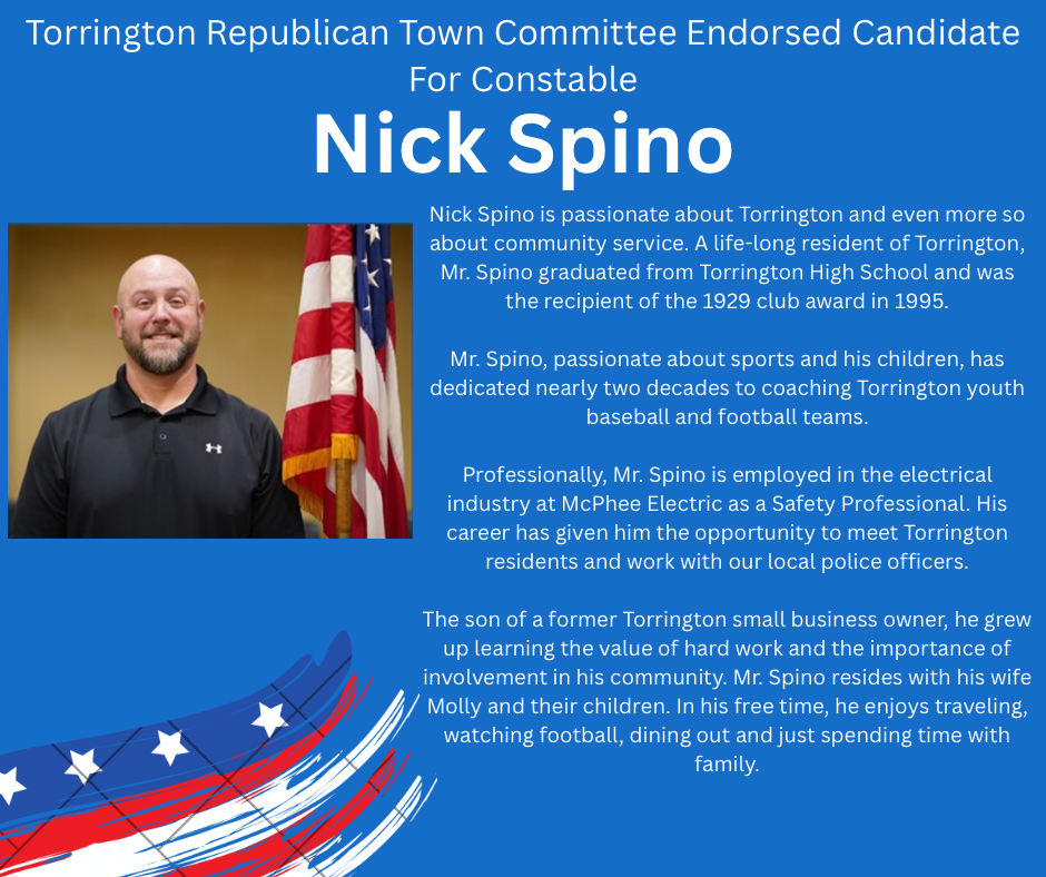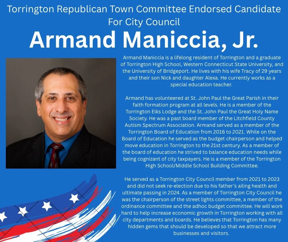 “The people of Torrington deserve strong, honest, and experienced leadership to guide our city forward. I am proud to run alongside an entire slate of hardworking Republican candidates who share that commitment. Together, we will support our families, strengthen our local economy, and ensure Torrington continues to be a community we are proud to call home. This is the right team at the right time to lead Torrington into the future”